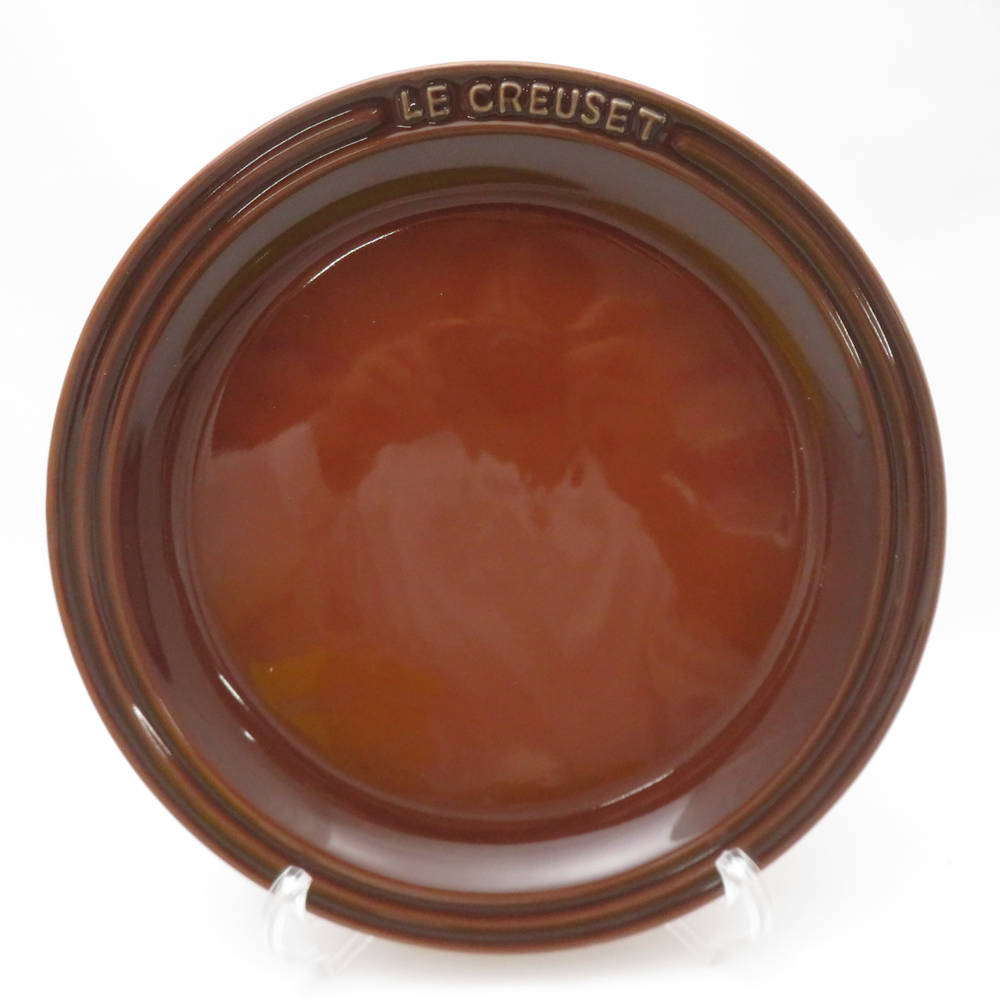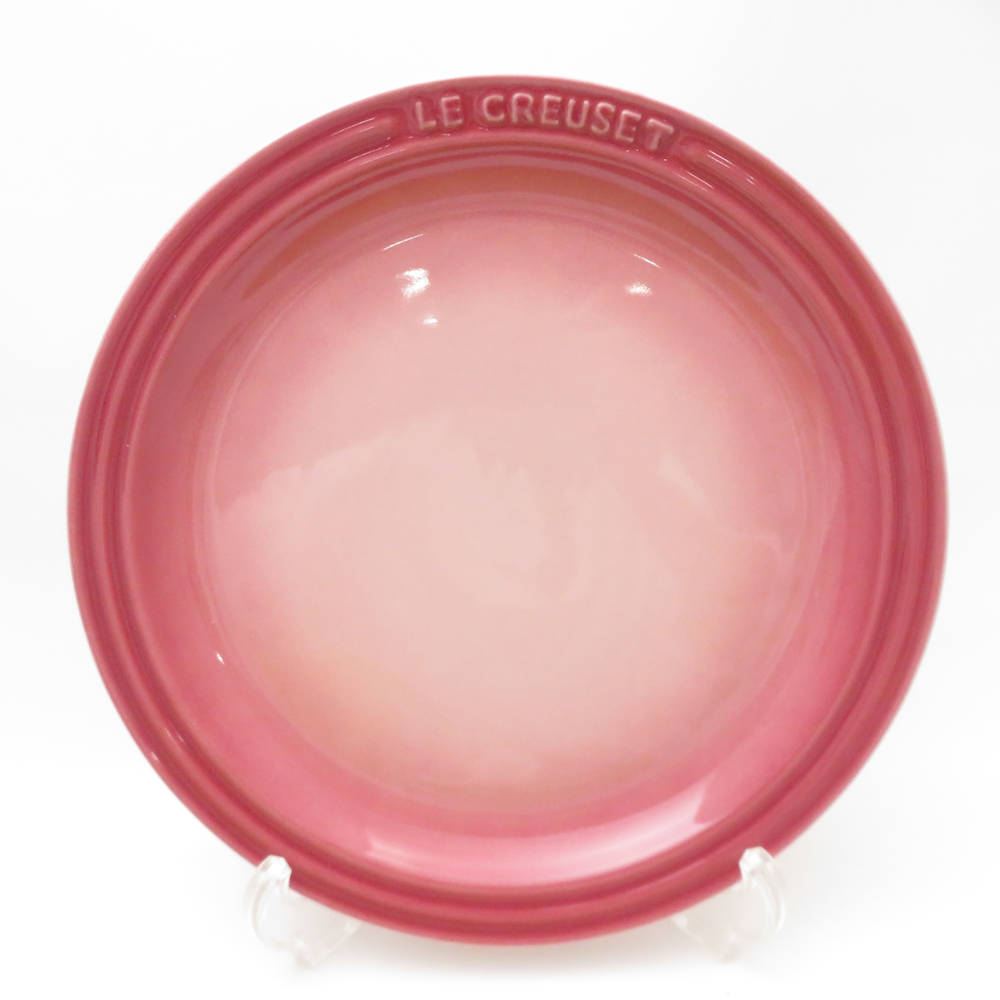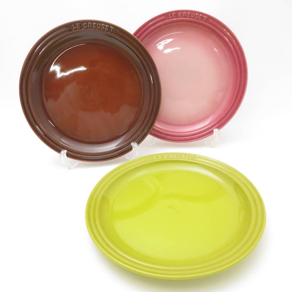 未使用 Le Creuset ルクルーゼ 中皿 3枚 セット 23cm ラウンドプレート ピンク ブラウン グリーン系 SO3624A1 【中古】