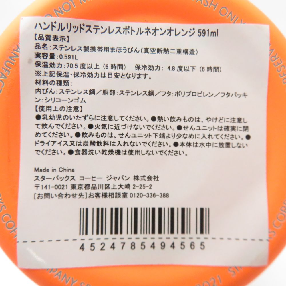 未使用 STARBUCKS スターバックス ハンドルリッド ステンレスボトル 1点 スタバ ネオンオレンジ 591ml タンブラー SC9074Q1 【中古】