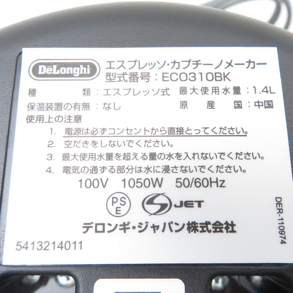 美品 DeLonghi デロンギ icona アイコナ ECO310 エスプレッソ・カプチーノメーカー SY13331Z 【中古】
