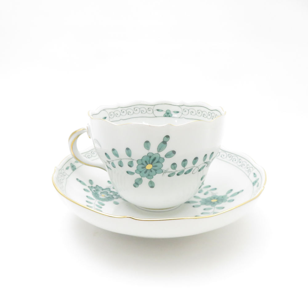 美品 MEISSEN マイセン インドの華 グリーン 343310 ティーカップ&ソーサー SY13350A3 【中古】