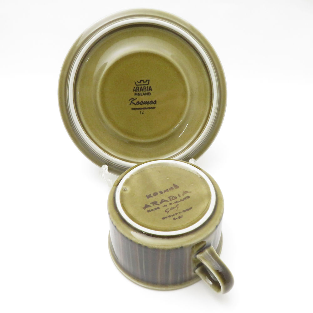 ARABIA アラビア KOSMOS コスモス ティーカップ&ソーサー 旧ロゴ 王冠マーク 北欧 SM4646A3 【中古】