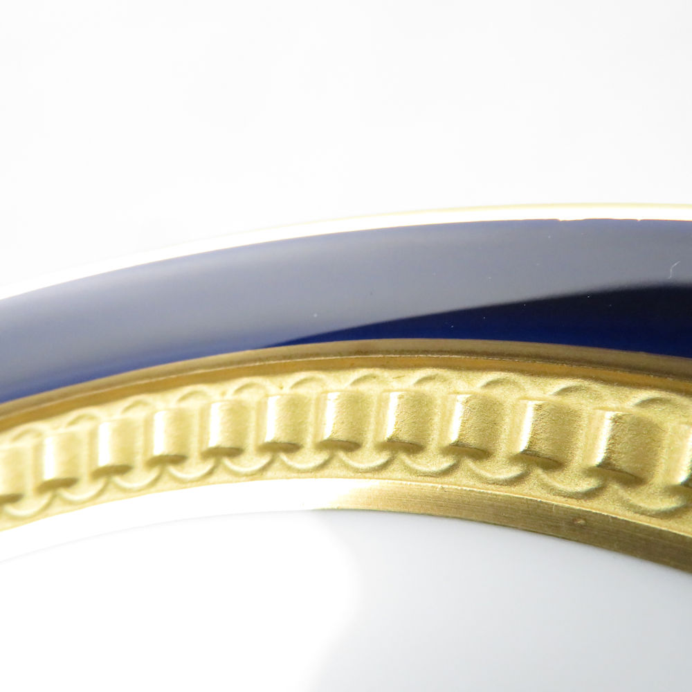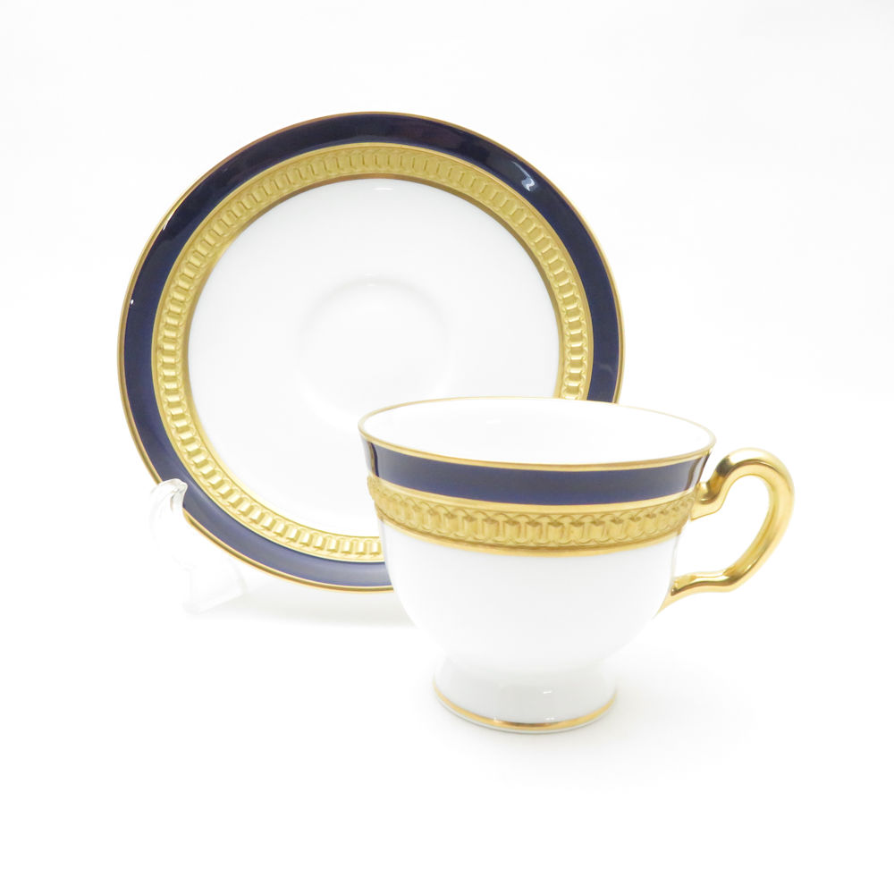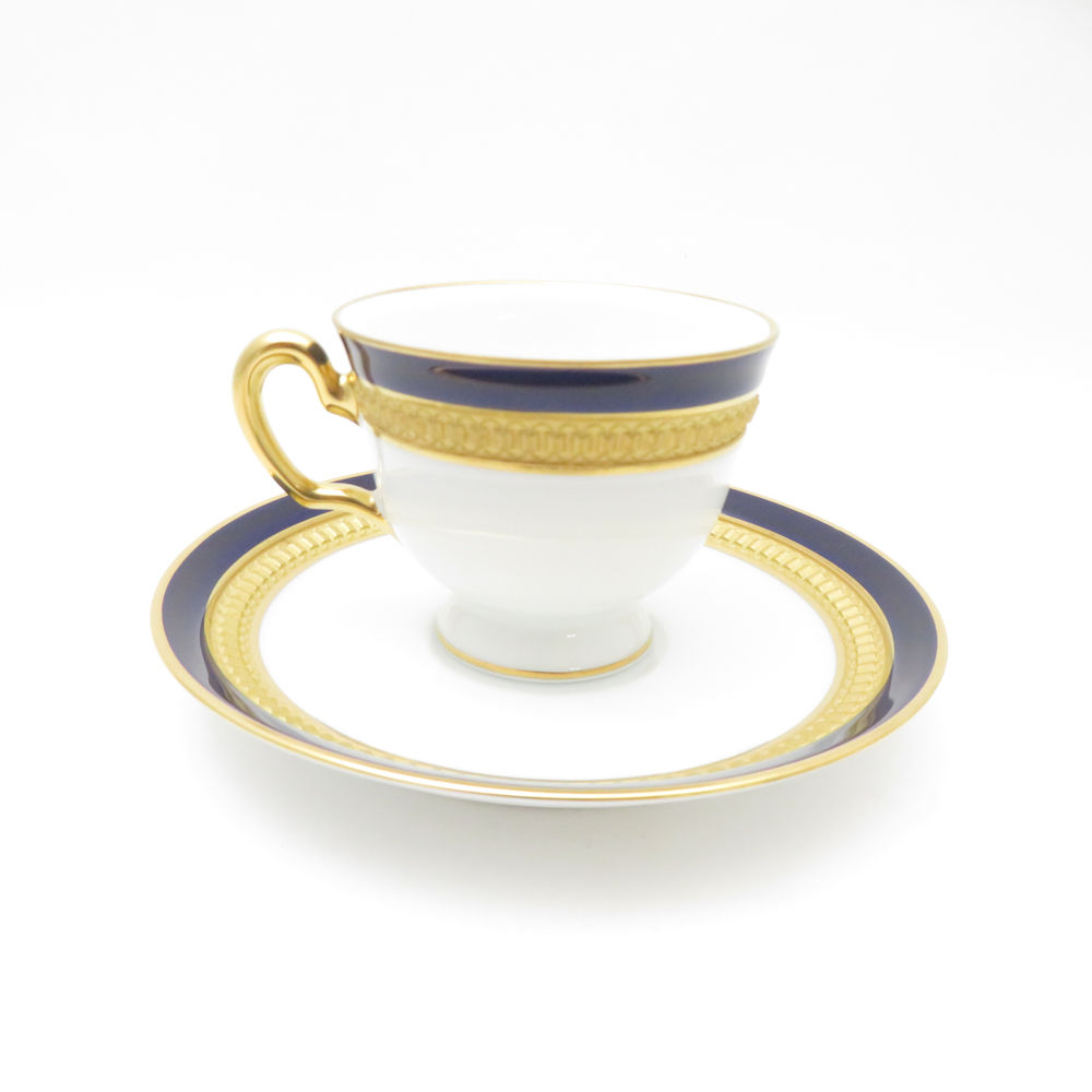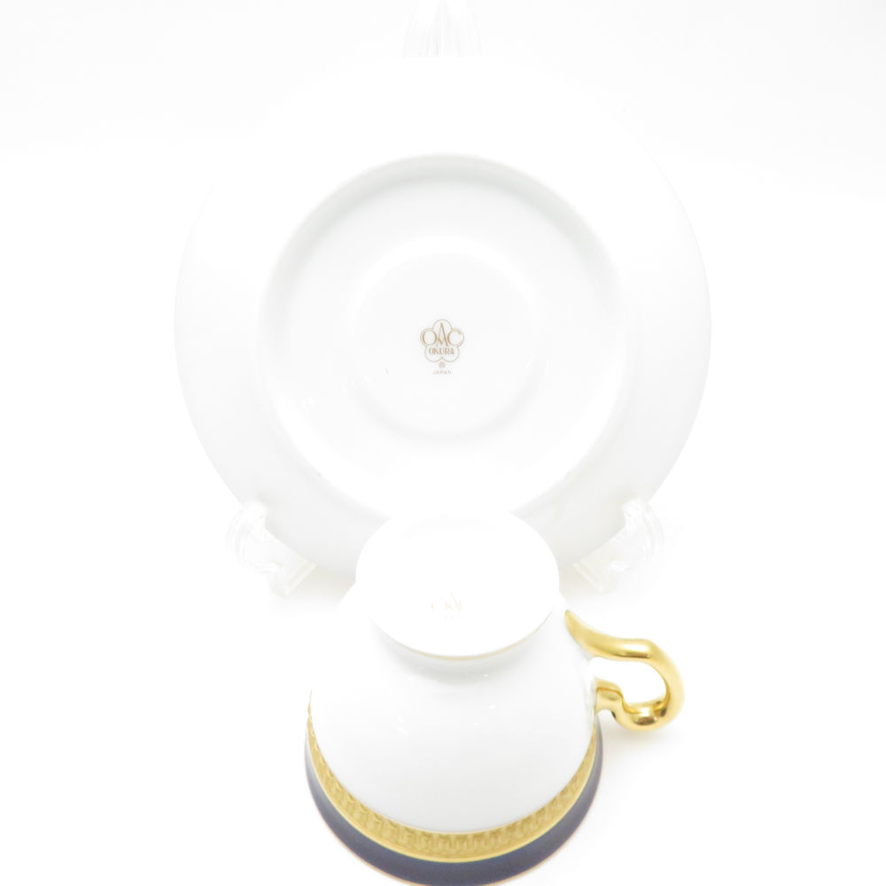 美品 OKURA 大倉陶園 ロイヤルブルークラウン 瑠璃エンボス デミタスカップ&ソーサー モカ エスプレッソ 金彩 SM4653A3 【中古】