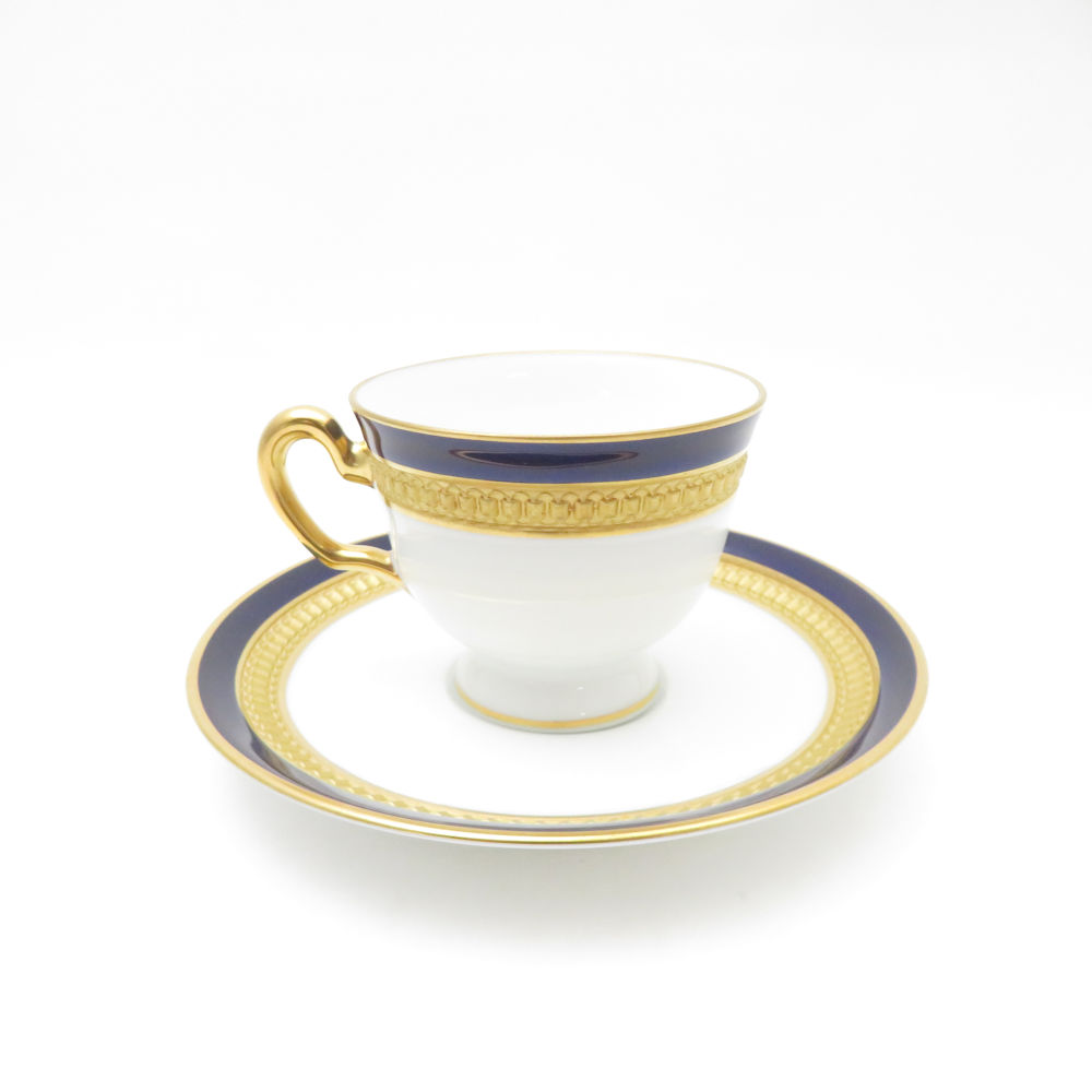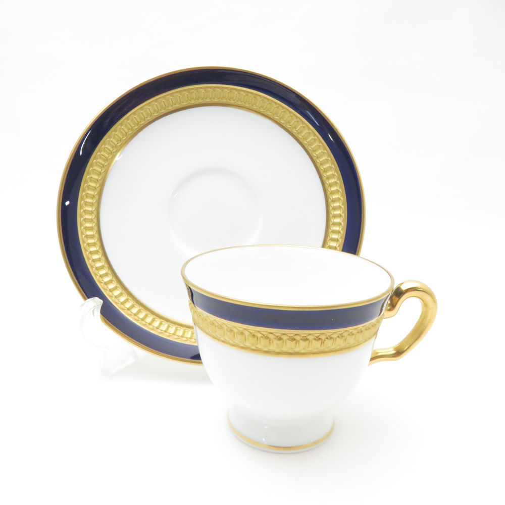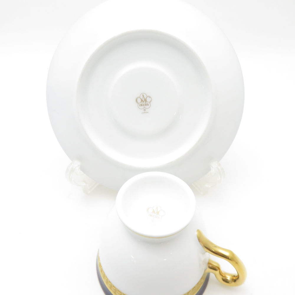 美品 OKURA 大倉陶園 ロイヤルブルークラウン 瑠璃エンボス デミタスカップ&ソーサー モカ エスプレッソ 金彩 SM4654A3 【中古】