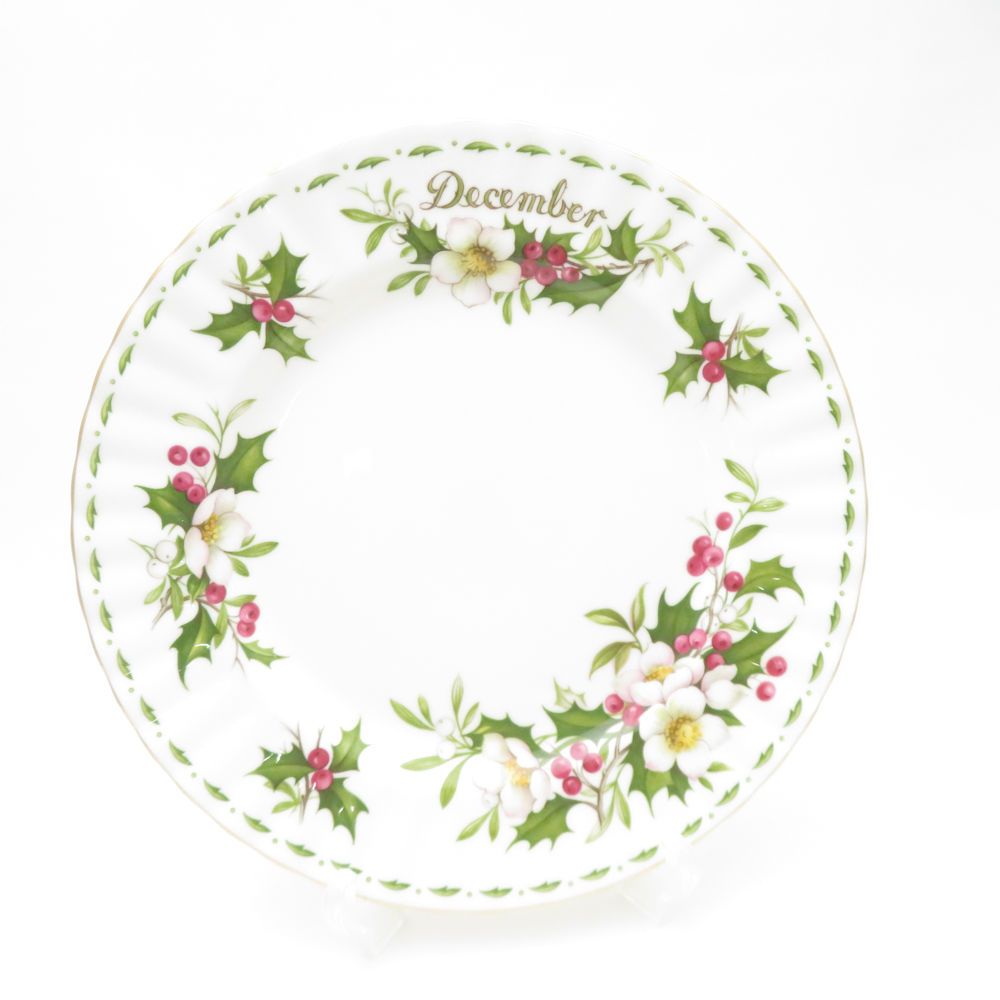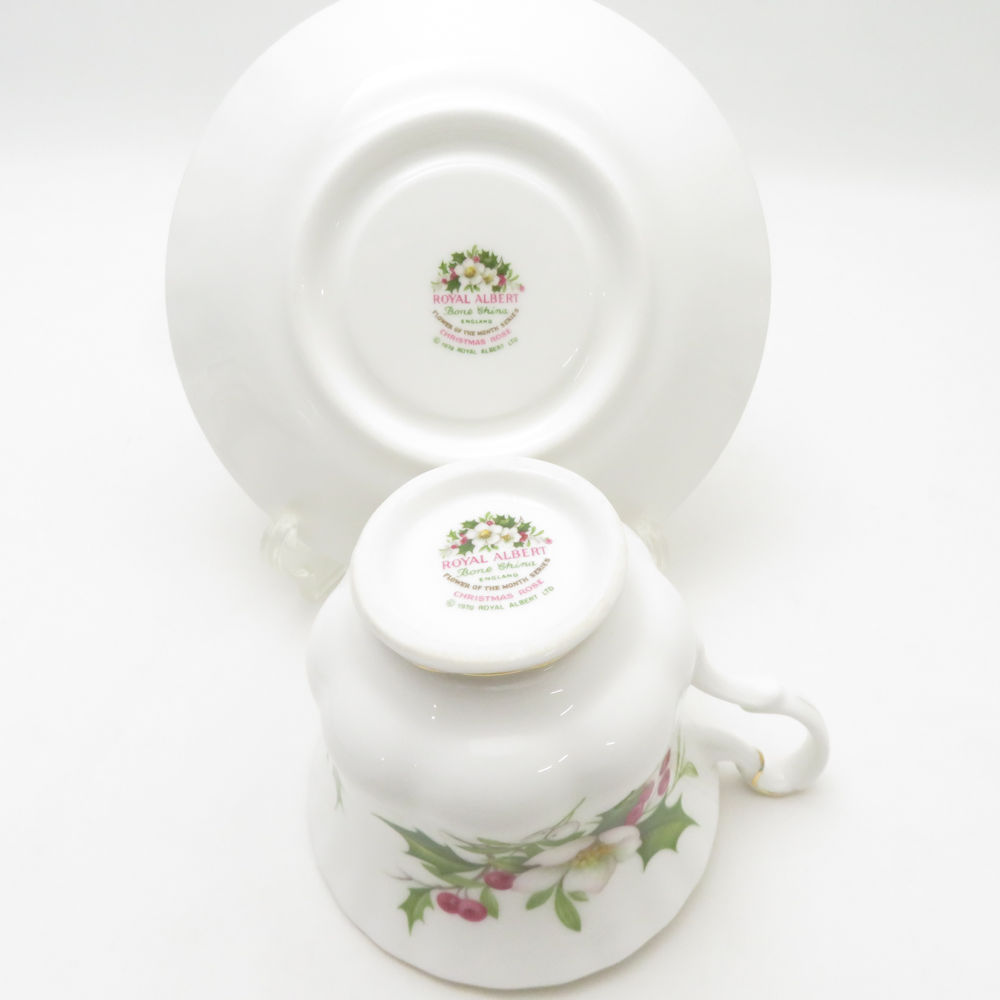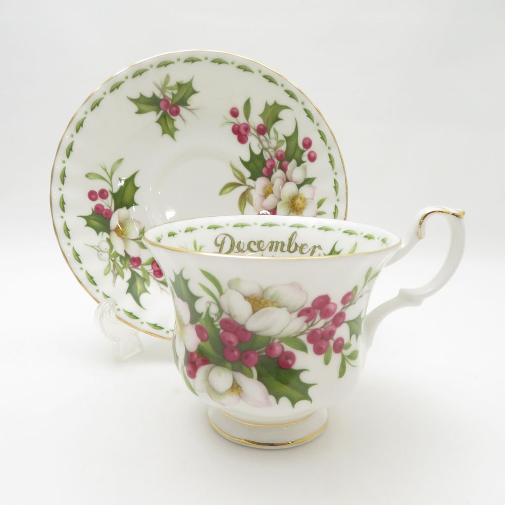 美品 ROYAL ALBERT ロイヤルアルバート フラワーオブザマンス 12月 クリスマスローズ カップ&ソーサー 中皿 1セット トリオ December 20cmプレート SM4658A3 【中古】