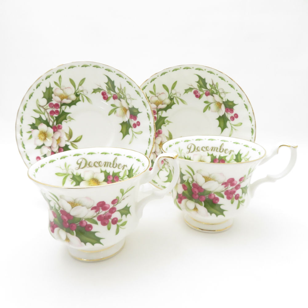 ROYAL ALBERT ロイヤルアルバート フラワーオブザマンス 12月 クリスマスローズ カップ&ソーサー 中皿 1セット セット December 20cmプレート SM4662A3 【中古】