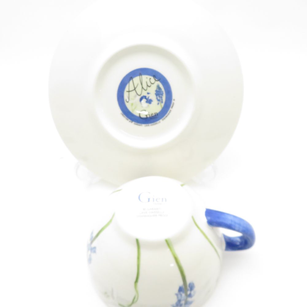 美品 Gien ジアン アイリス カップ&ソーサー 2客 ペア SM4734G2 【中古】