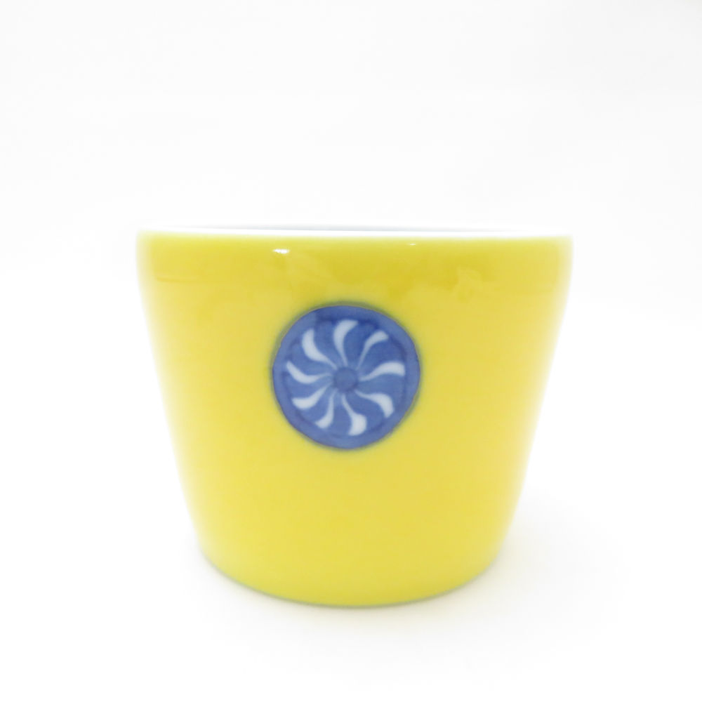 美品 Fukagawa Seiji 深川製磁 黄地丸紋 蕎麦猪口 百年庵 SM4751B4 【中古】