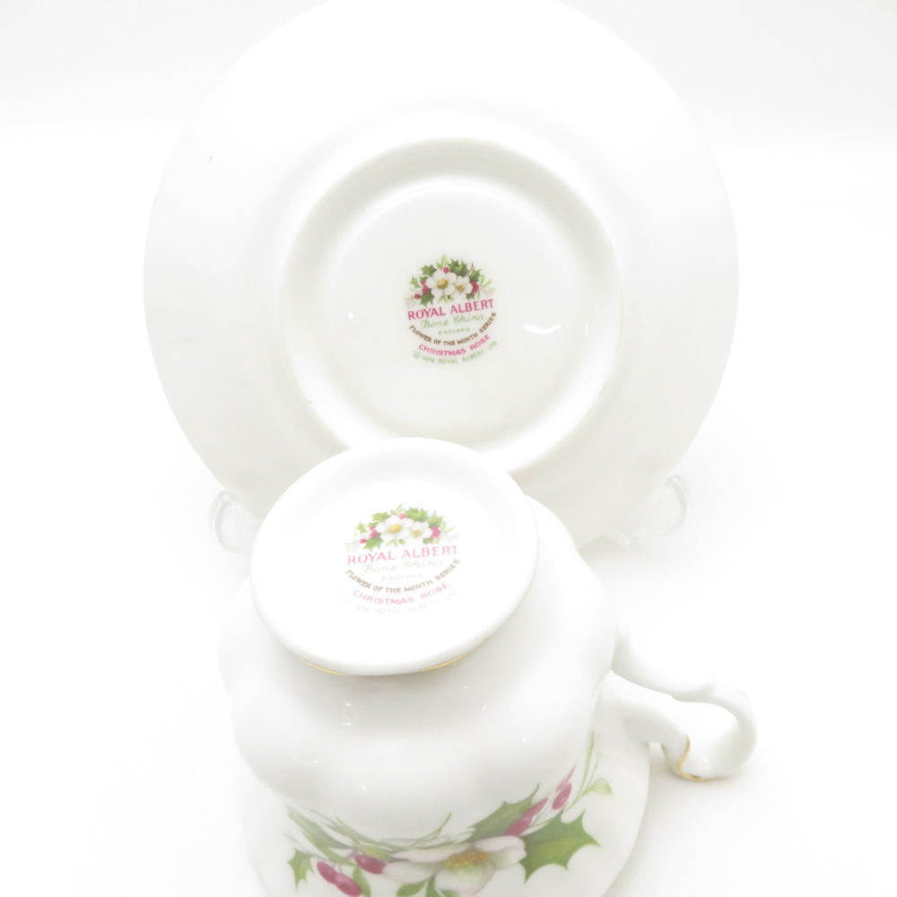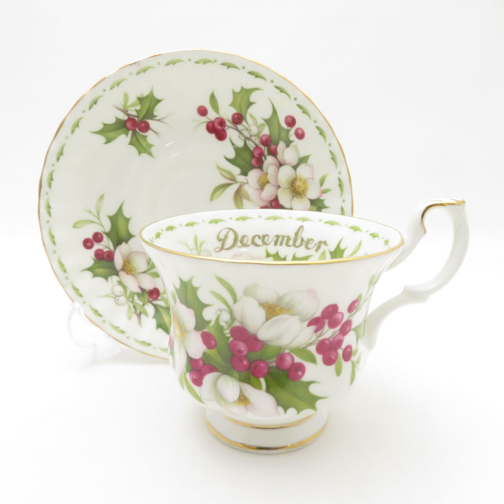 ROYAL ALBERT ロイヤルアルバート フラワーオブザマンス December 12月 ティーカップ&ソーサー 中皿 セット 20cmプレート 花柄 英国 SU13283G1 【中古】