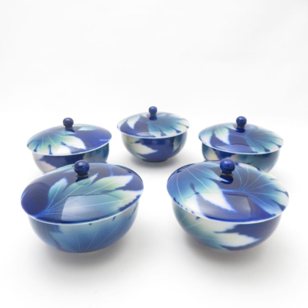 美品 Fukagawa Seiji 深川製磁 瑠璃かえで 急須&蓋付湯呑 6点 セット 茶器 湯飲 茶碗 SC9324B1 【中古】