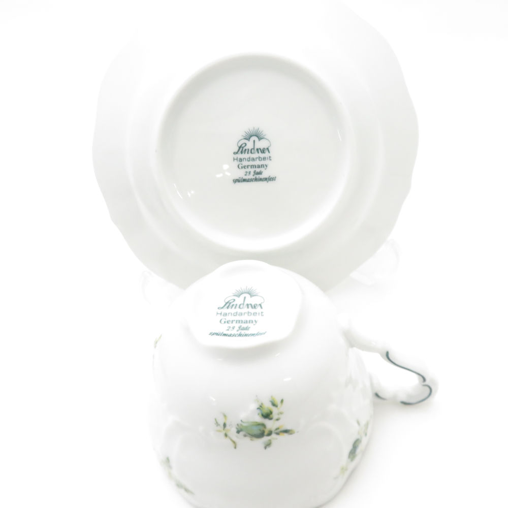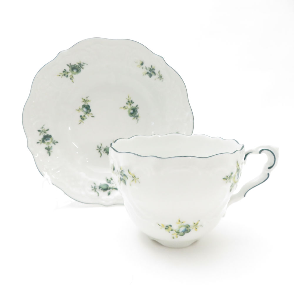 美品 Lindner リンドナー ジェイド コーヒーカップ&ソーサー 2客 ペア 花柄 フラワー SC9317P1 【中古】
