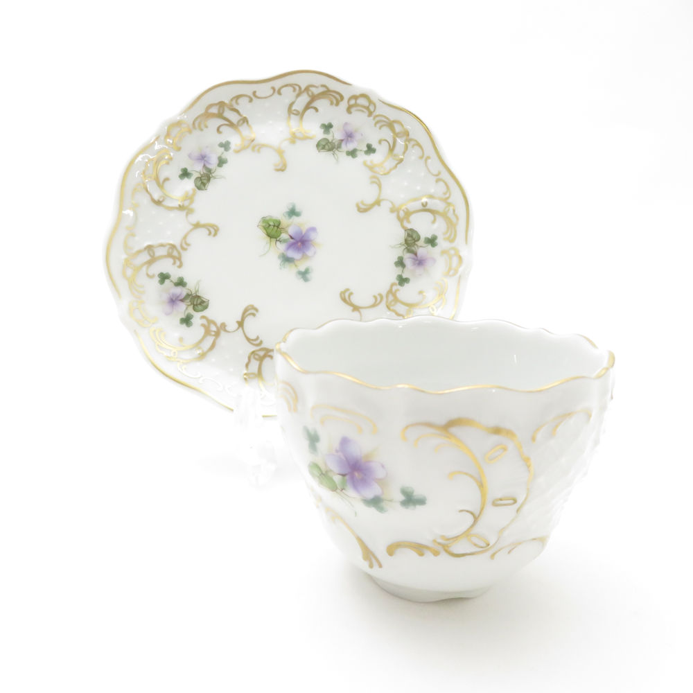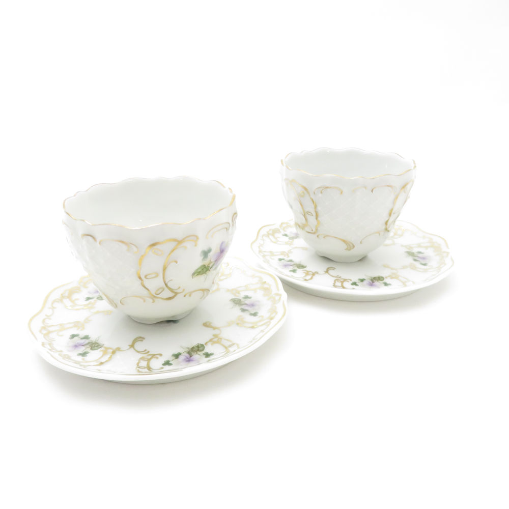 美品 Lindner リンドナー バイオレット ミニカップ コースター 2客 ペア カップ&ソーサー レア 希少 花柄 SC9322P1 【中古】