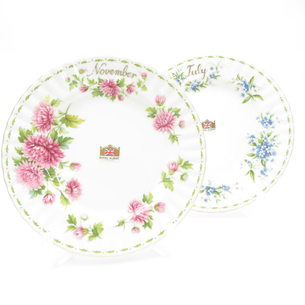 未使用 ROYAL ALBERT ロイヤルアルバート フラワーオブザマンス 中皿 2枚 セット 7月 11月 20cmプレート SM4790J2 【中古】