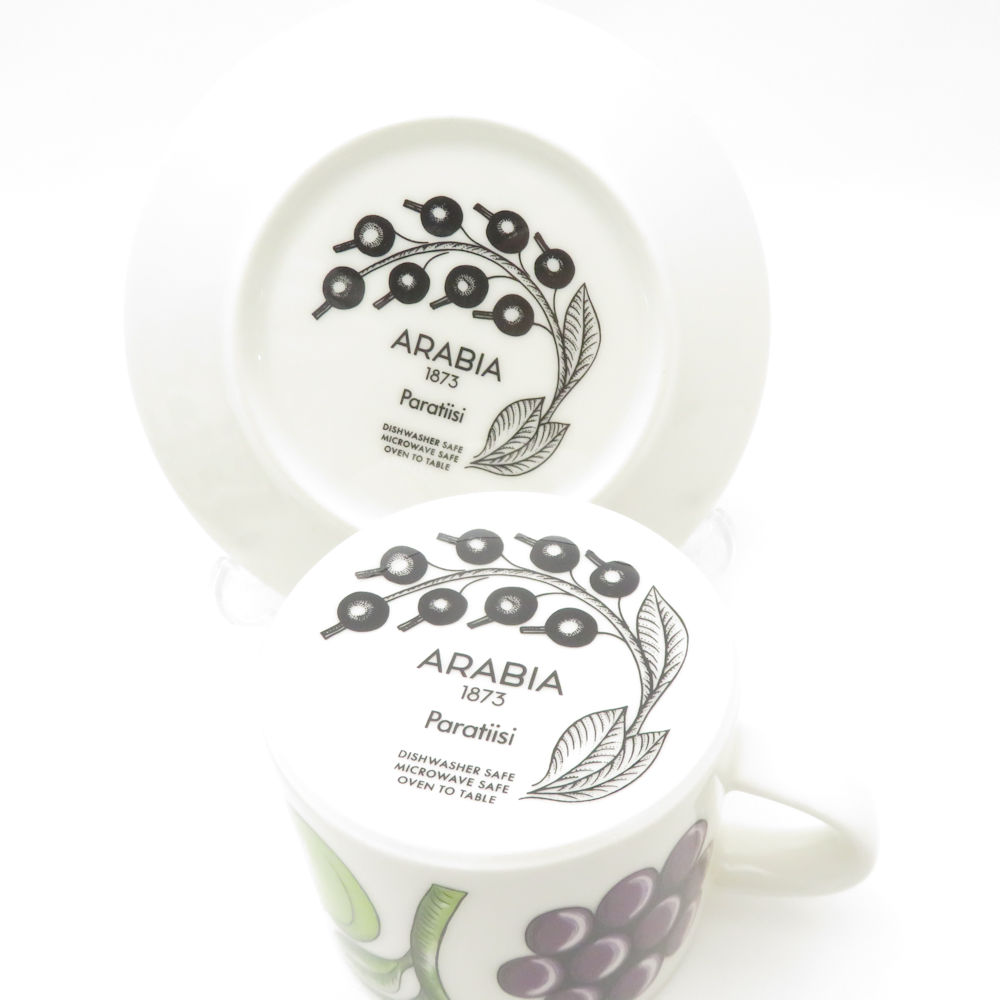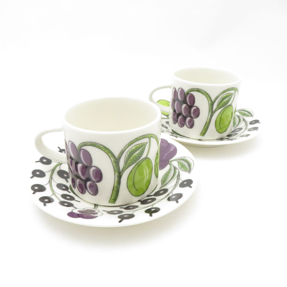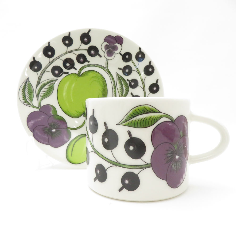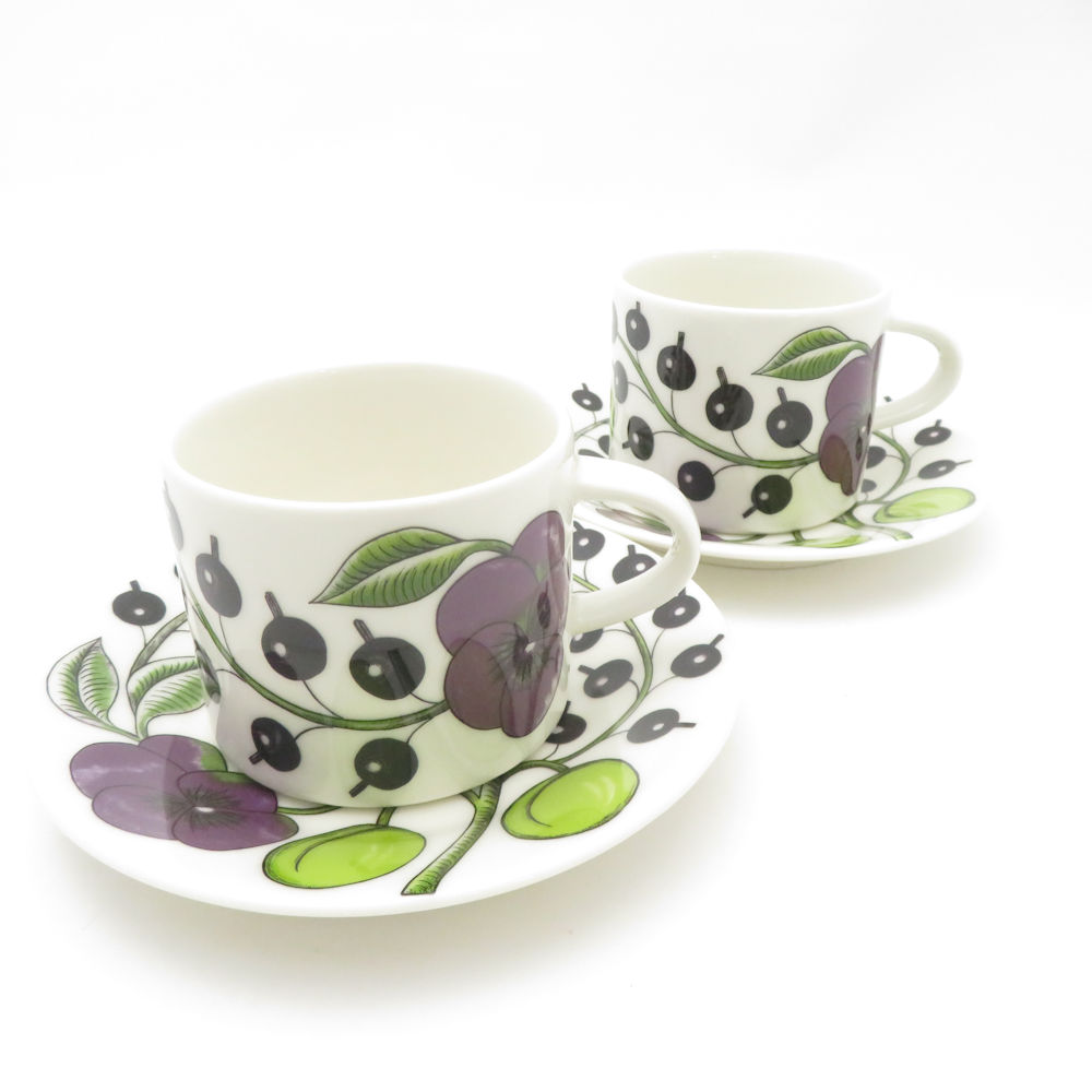 美品 ARABIA アラビア パラティッシ パープル カップ&ソーサー 2客 ペア 北欧 SC9375L1 【中古】