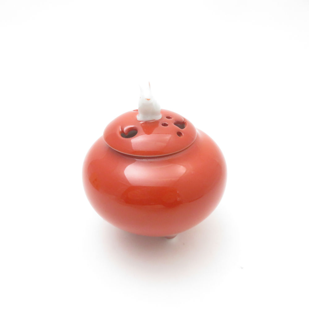 美品 Fukagawa Seiji 深川製磁 朱赤 1号 香炉 有田焼 宮内庁御用達 SY13435D2 【中古】