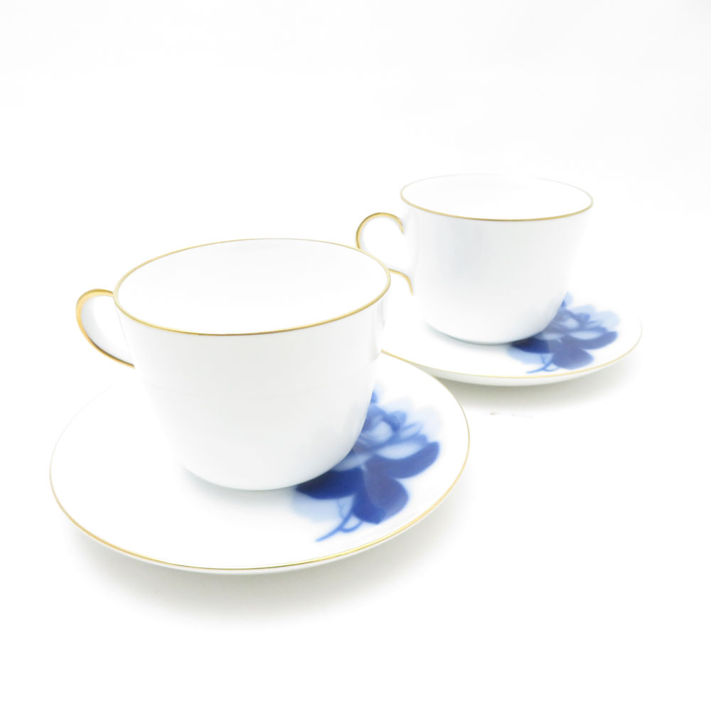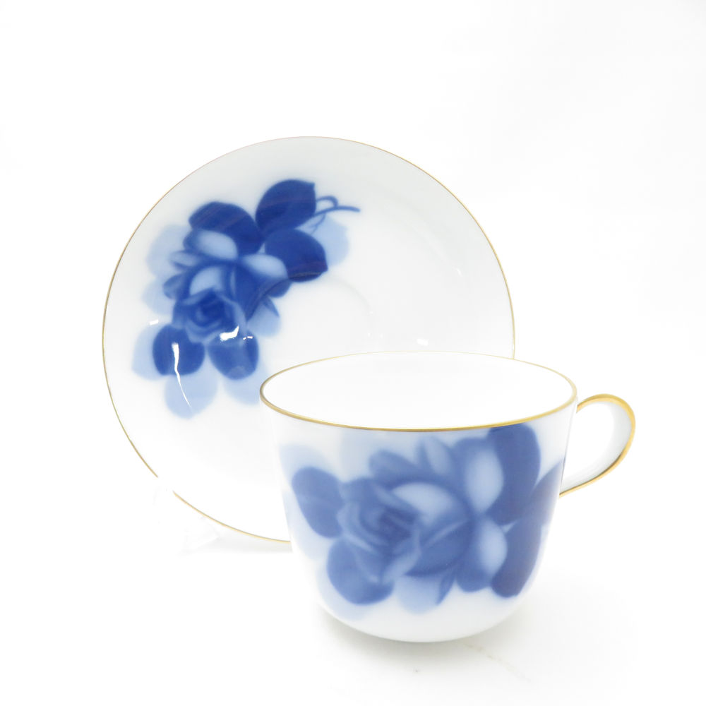 OKURA 大倉陶園 ブルーローズ 8211(J.Bマーク) モーニングカップ&ソーサー 2客 ペア 薔薇 バラ SC9447B2 【中古】