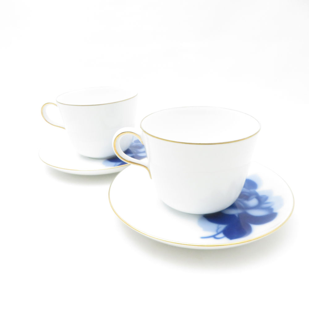 OKURA 大倉陶園 ブルーローズ 8211 モーニングカップ&ソーサー 2客 ペア 薔薇 バラ SC9448B2 【中古】