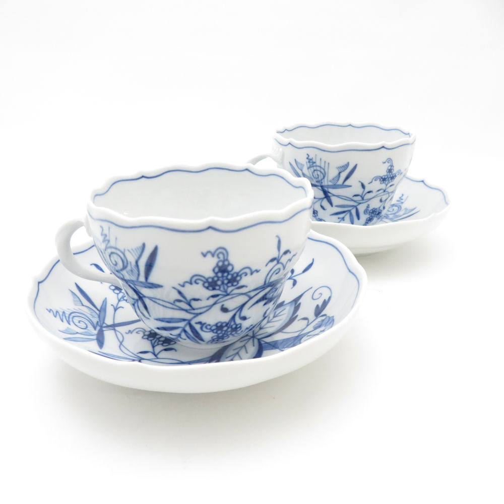 美品 MEISSEN マイセン ブルーオニオン カップ&ソーサー 2客 ペア ティー/コーヒー 220ml SC9496E2 【中古】