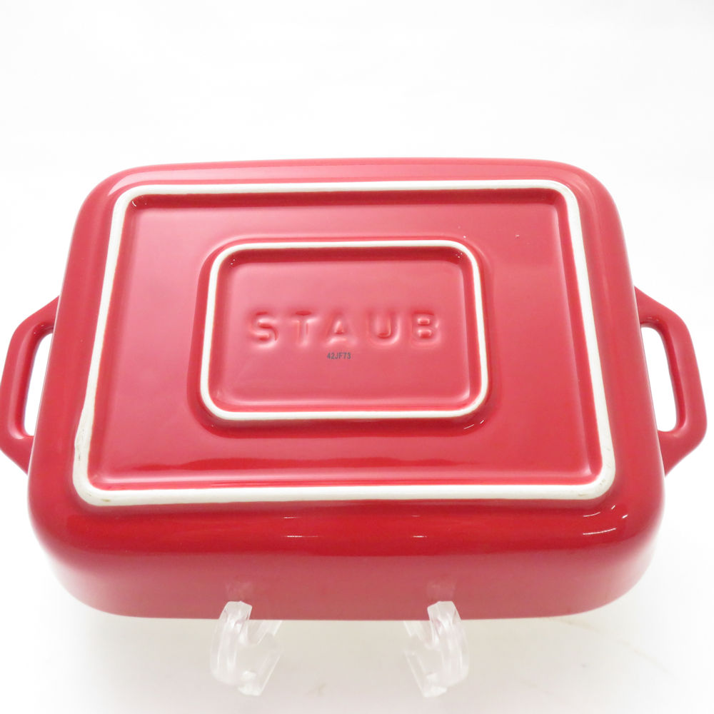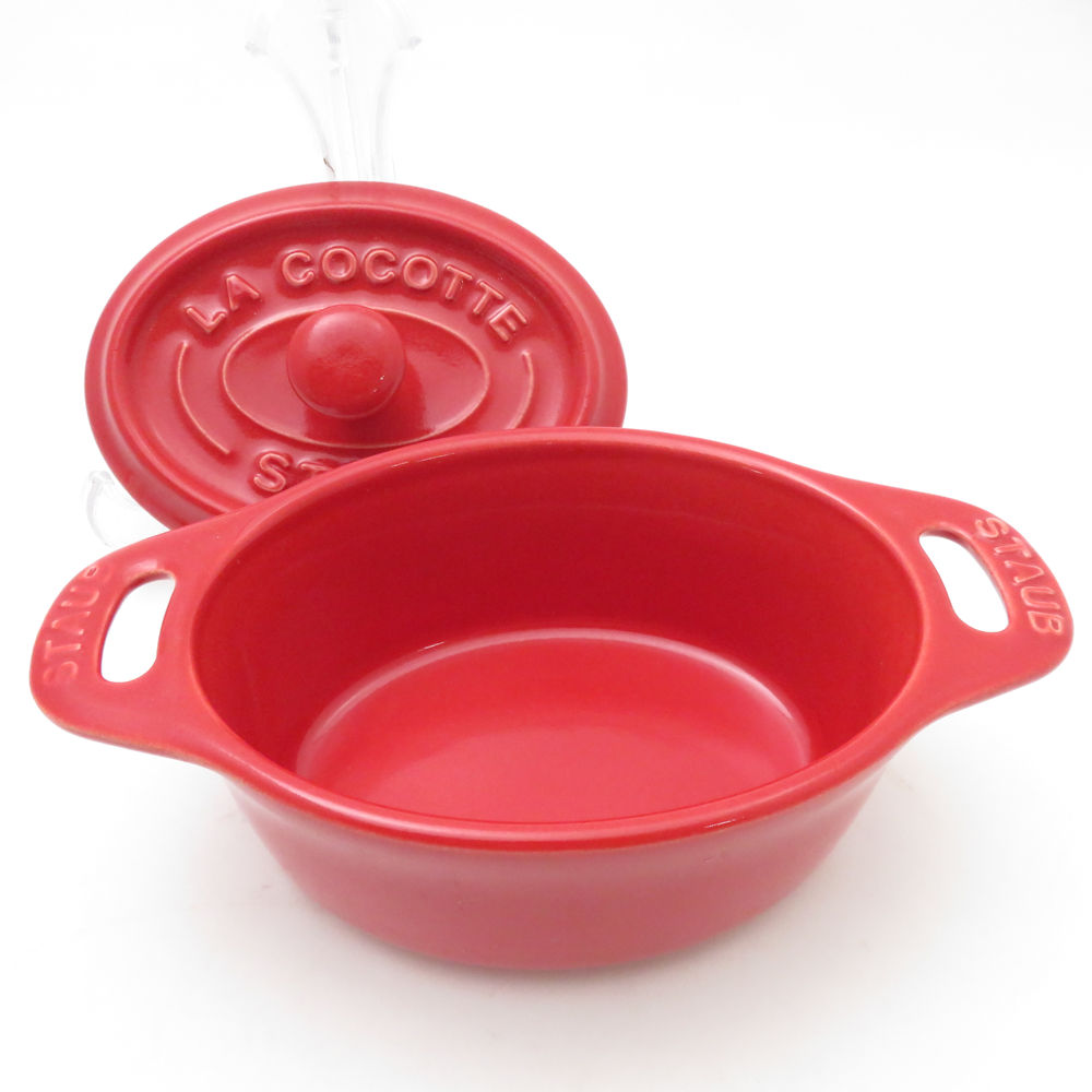 美品 STAUB ストウブ セラミック オーバル ミニココット&レクタンギュラーディッシュ 2点 直火・電気・IH不可 セット グラタン皿 料理 調理器具 SU13396L1 【中古】