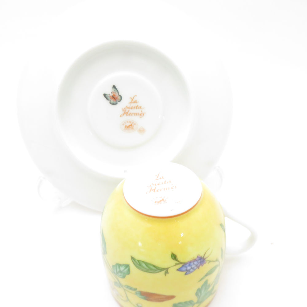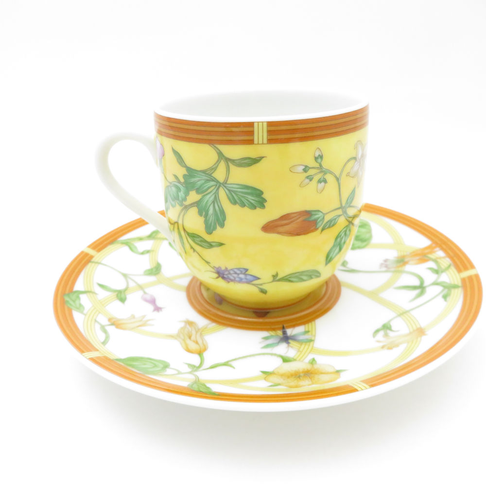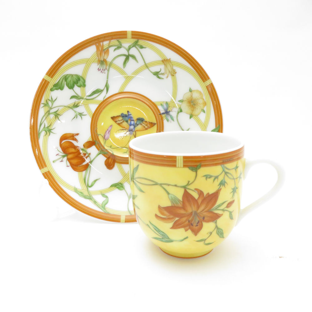 未使用 HERMES エルメス シエスタ デミタスカップ&ソーサー フラワー 花 蝶 SC9570E2 【中古】