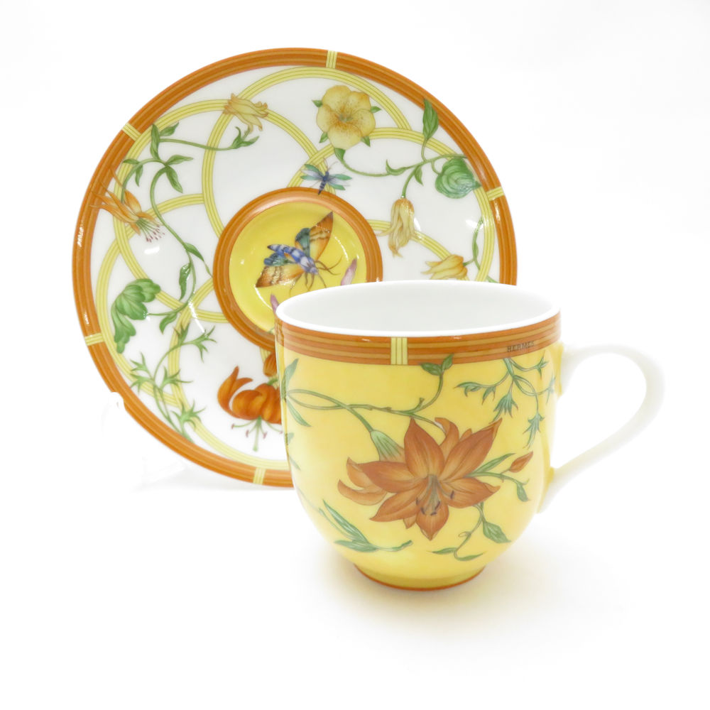 未使用 HERMES エルメス シエスタ デミタスカップ&ソーサー フラワー 花 蝶 SC9572E2 【中古】