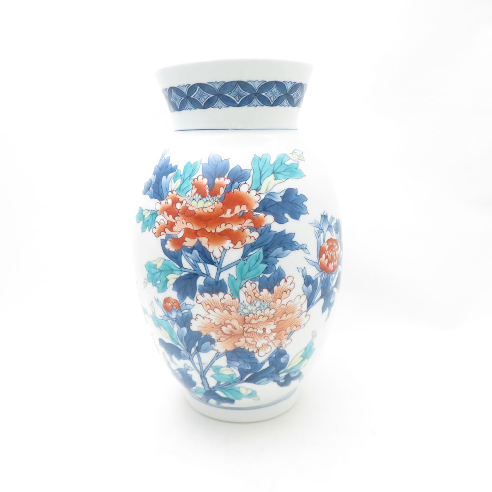 未使用 鍋島焼 魯山 花瓶 フラワーベース 花びん 牡丹 SC9943C2 【中古】