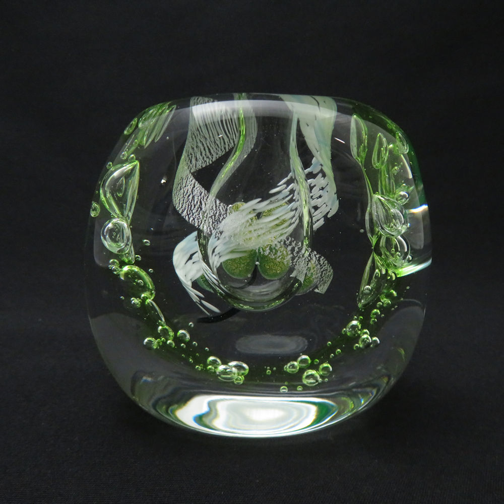 美品 グラスアート黒木 グラスアート黒木 花瓶 クローバー 一輪挿し ガラスアート SD179J1 【中古】