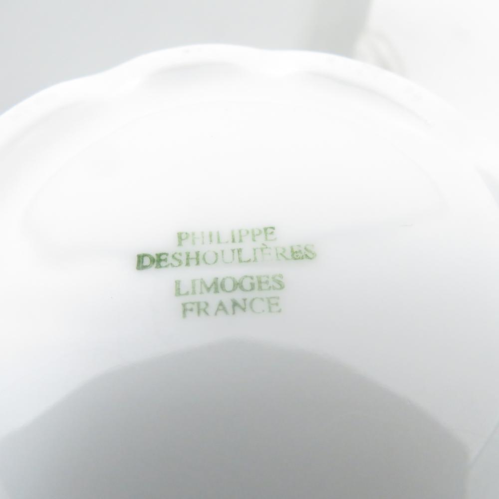 美品 PHILIPPE DESHOULIERES フィリップデズリエ LIMOGES リモージュ窯 モーニングカップ&ソーサー 1客 カリフォルニア クロワッサン カフェオレ SU13446A2 【中古】