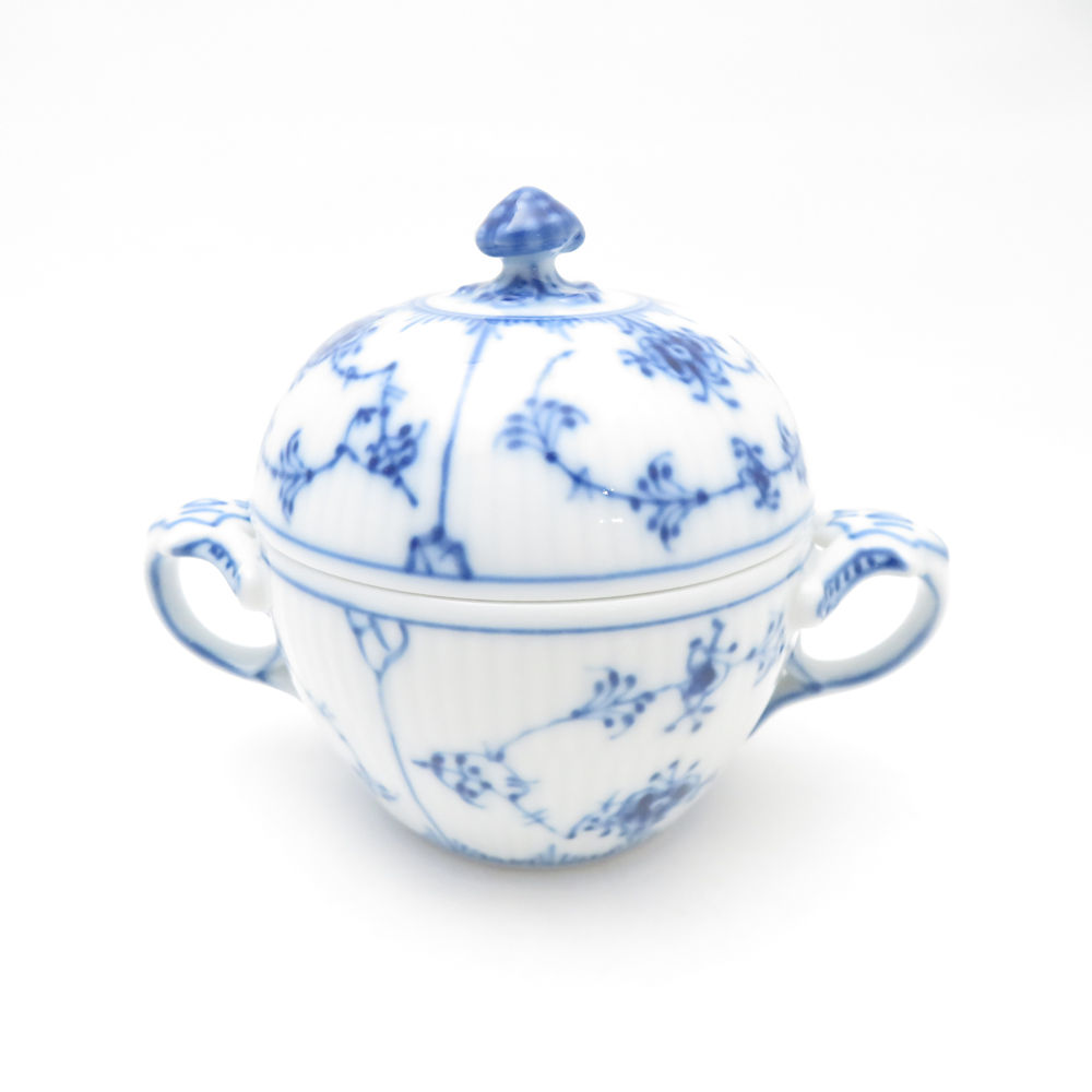 美品 ROYAL COPENHAGEN ロイヤルコペンハーゲン ブルーフルーテッドプレイン シュガーポット デンマーク製 ボウル 蓋付 砂糖 小物入れ SC10080L1 【中古】