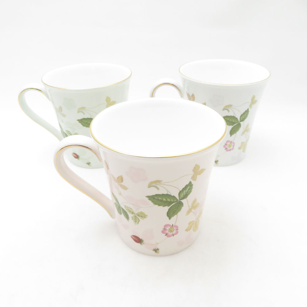 美品 WEDGWOOD ウェッジウッド ワイルドストロベリーパステル マグカップ 3点 セット ピンク/グリーン/ブルー 金彩 SU13565L1 【中古】